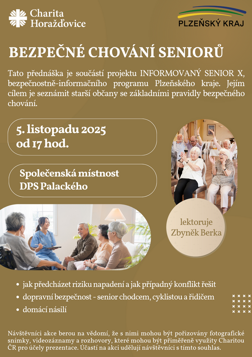 Návštěvníci akce berou na vědomí, že s nimi mohou být pořizovány fotografické snímky, videozáznamy a rozhovory v rámci dokumentace akce, které mohou být přiměřeně využity Charitou ČR pro účely prezentace a s pořizováním takových záznamů souhlasí. Účastí na akci udělují návštěvníci souhlas se zpracováním poskytnutých osobních údajů podle zákona č. 101/2000 Sb. Souhlas se zpracováním osobních údajů udělují dobrovolně a mohou jej kdykoli odvolat.