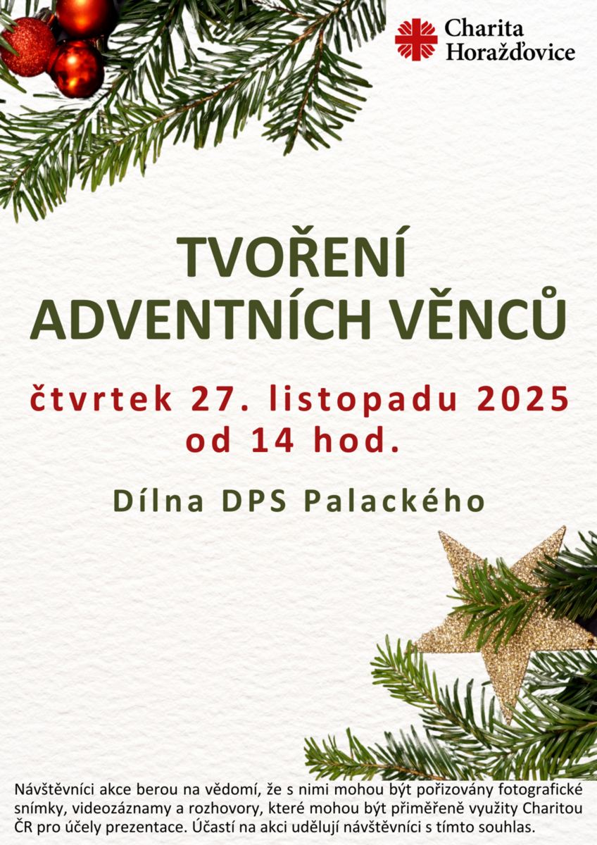 Návštěvníci akce berou na vědomí, že s nimi mohou být pořizovány fotografické snímky, videozáznamy a rozhovory v rámci dokumentace akce, které mohou být přiměřeně využity Charitou ČR pro účely prezentace a s pořizováním takových záznamů souhlasí. Účastí na akci udělují návštěvníci souhlas se zpracováním poskytnutých osobních údajů podle zákona č. 101/2000 Sb. Souhlas se zpracováním osobních údajů udělují dobrovolně a mohou jej kdykoli odvolat.